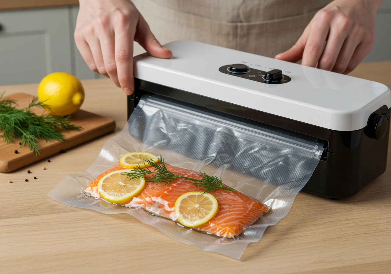 Cocinar al vacío a baja temperatura mantiene jugos y textura. Un salmón con eneldo queda mantecoso; un pollo con ajo y tomillo sale muy tierno.