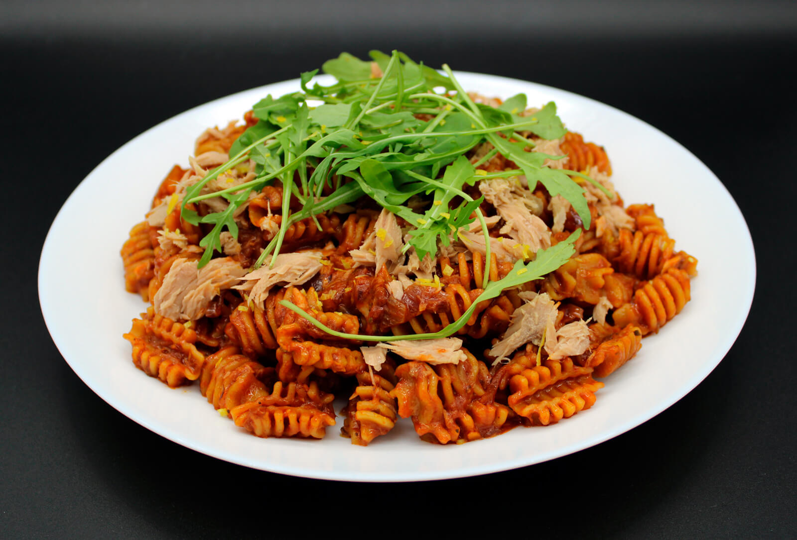 Esta receta de pasta con salsa de tomate, atún y rúcula es una excelente manera de disfrutar de una comida completa y satisfactoria con muy poco esfuerzo. La combinación de sabores frescos y ricos, junto con la facilidad y rapidez de preparación, la convierten en una receta TOP. Disfruta de este delicioso plato cualquier día de la semana.!